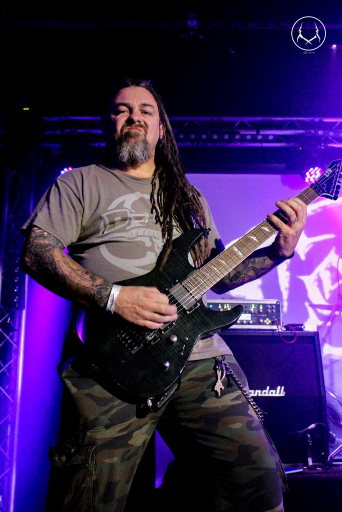 Plugging in next are our friends in Hellfekted, fresh off the back of their massively successful ‘Morning Mosh’ at Bloodstock the band take the stage with the confidence and swagger of bands many years their senior. This is basically a home town gig for Hellfekted, but that didn’t stop them bringing an all out assault of a set list, you know it’s going to go off when ‘Death Of Iron’ is the opener, the set is littered with bangers from their debut album, singles and a sneak at new tracks from their sophomore album that will be getting recorded later this year. The guys are tight, Liam has grown into his onstage frontman persona so well and his interaction with the crowd now feels so natural, Chris and Matt have the back end down so tight now that the whole set is so tight that Liam and Becci can weave the guitar sound around their little fingers and into your ears with ease, even Liam losing his wireless transmitter at the end of the set didn’t dampen another killer set from one of the UK’s rising stars in metal.