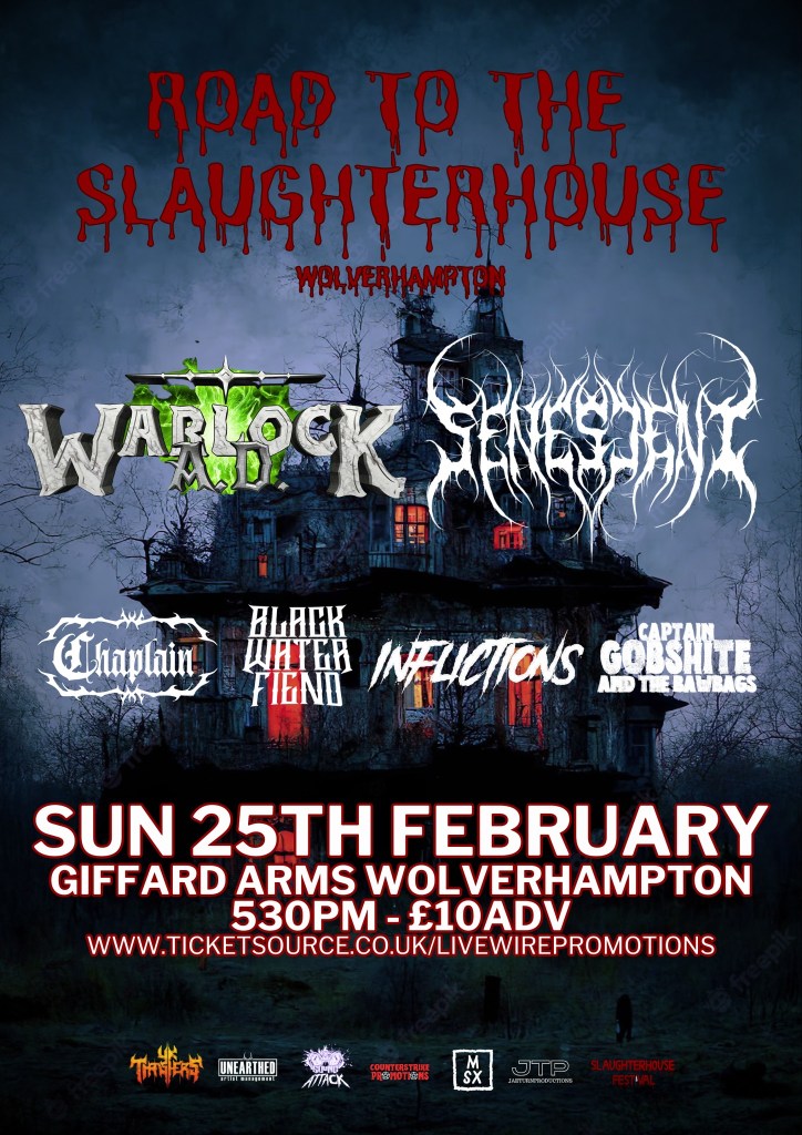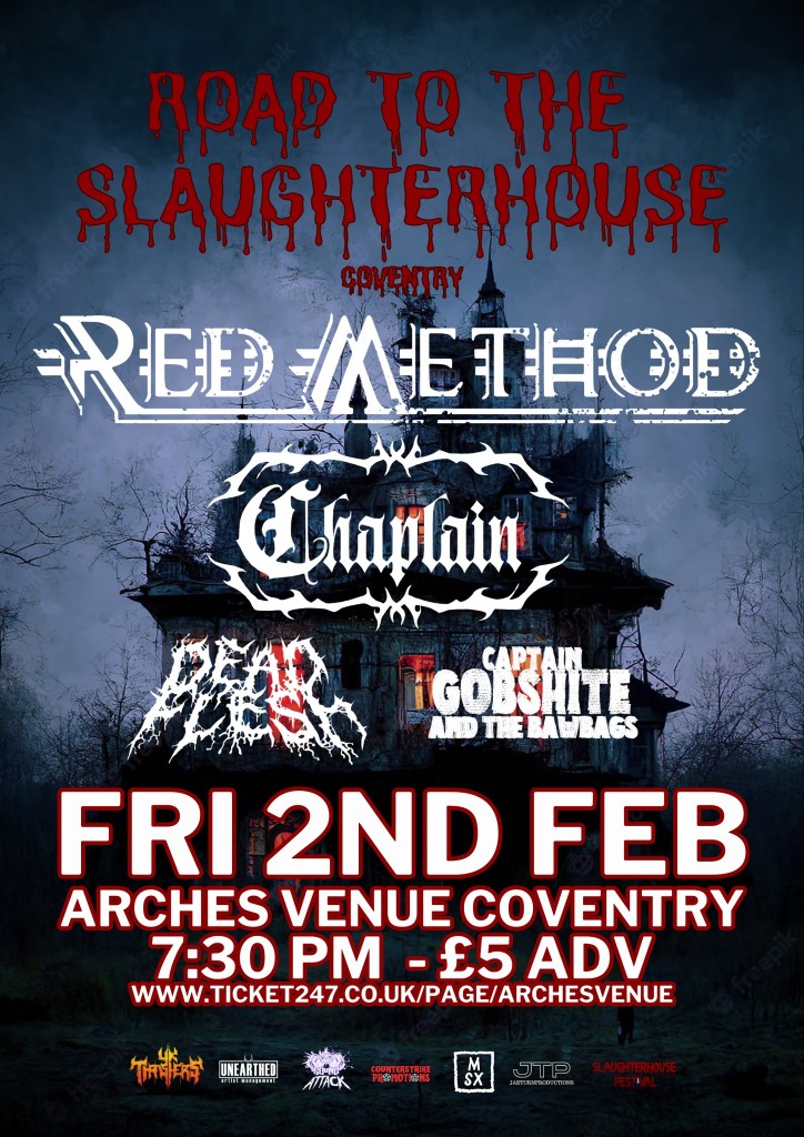 It’s not long now until the Road To Slaughterhouse Festival begins, kicking off in Coventry on the 2nd Feb with Red Method, Chaplain, Dead Flesh and Captain Gobshite at The Arches, then heading to Wolverhampton on the 25th Feb with Warlock A.D headlining a mixed bill of heavy… and then topping off with a Free Entry at The Devils Dog in Digbeth, Birmingham headline by Bristol’s Embodiment on the 6th April, all ahead of the main event in May…