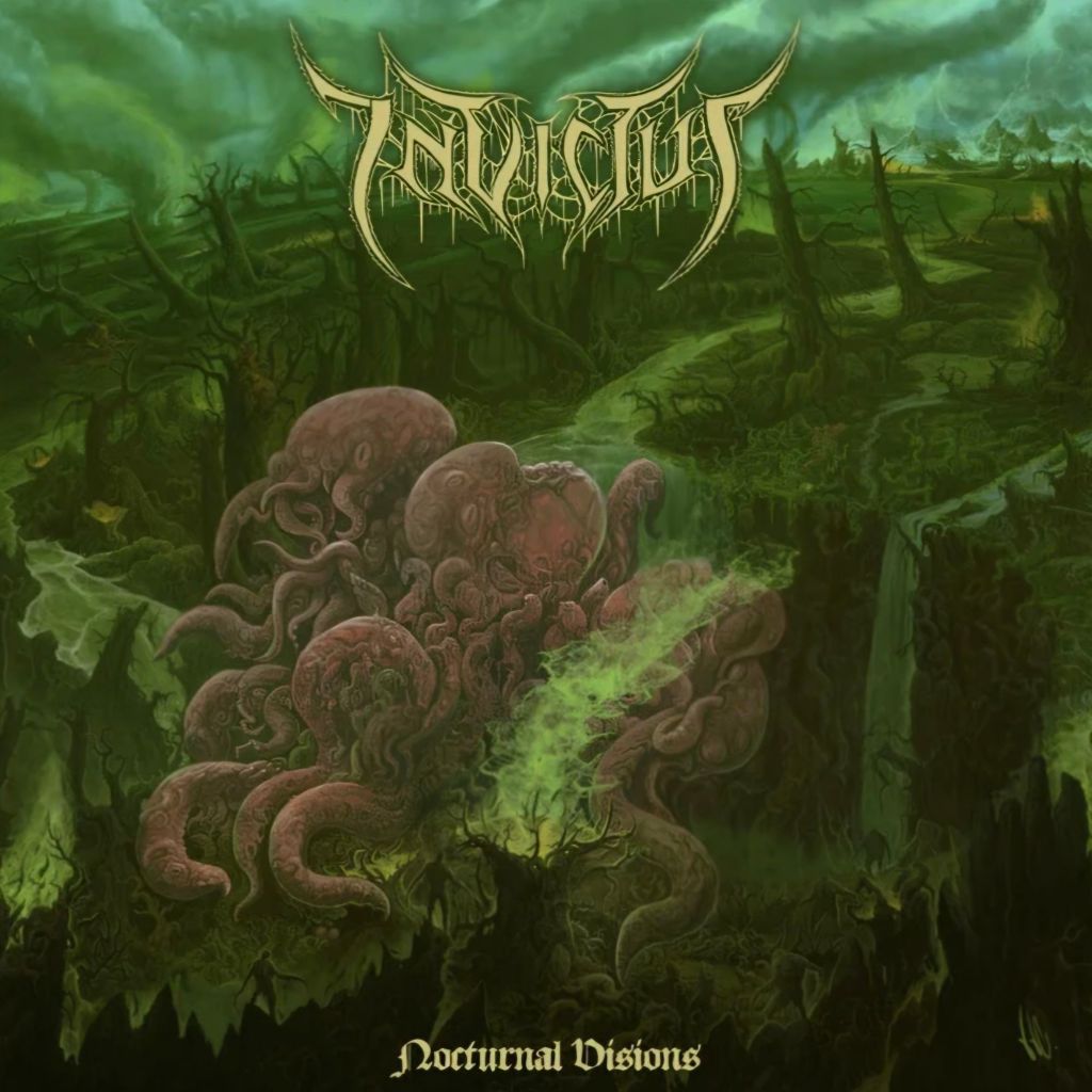 The Nagano City natives have made a bold choice for their second album, NOCTURNAL VISIONS. Where INVICTUS’ 2020 debut was a hammer to the face in brutal death metal with a dark, thrash bite, NOCTURNAL VISIONS finds the trio trading some of those teeth with a thick miasma of scooped guitars and ominous dread.