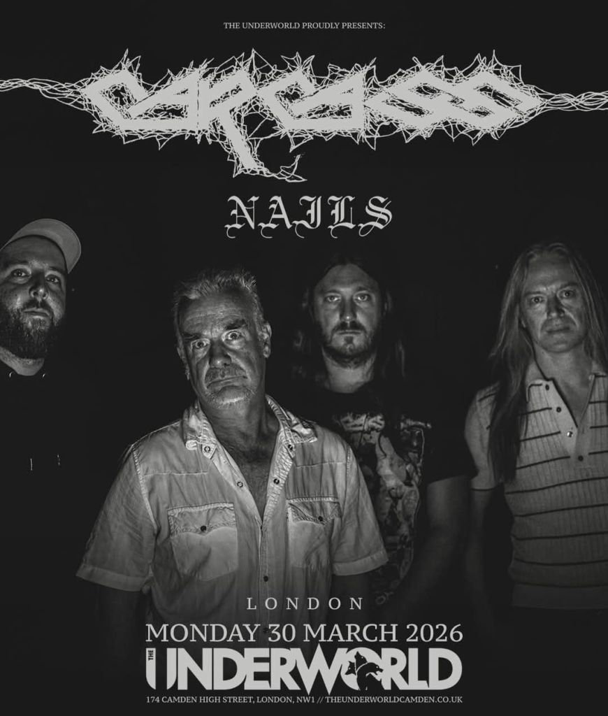 Needless to say, that was a great night of metal. So good that CARCASS decided to slot a headline gig of their own at Camden’s Underworld, and drag tour mates Nails along with them.