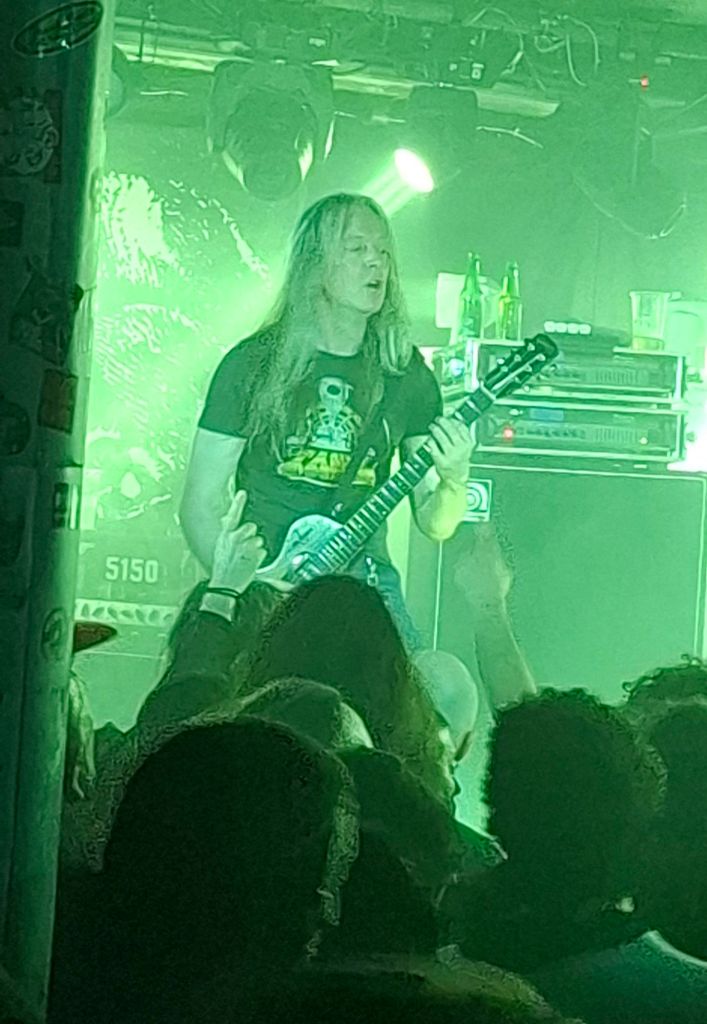 Much of the first half of the gig was a setlist repeat of the tour with Kreator. INCARNATED SOLVENT ABUSE, NO LOVE LOST and DEATH CERTIFICATE all had their usual place, and were all equally enjoyable to witness live again. Nobody should argue this. Why mess around with what you have practiced and perfected on what was meant to be a day off?